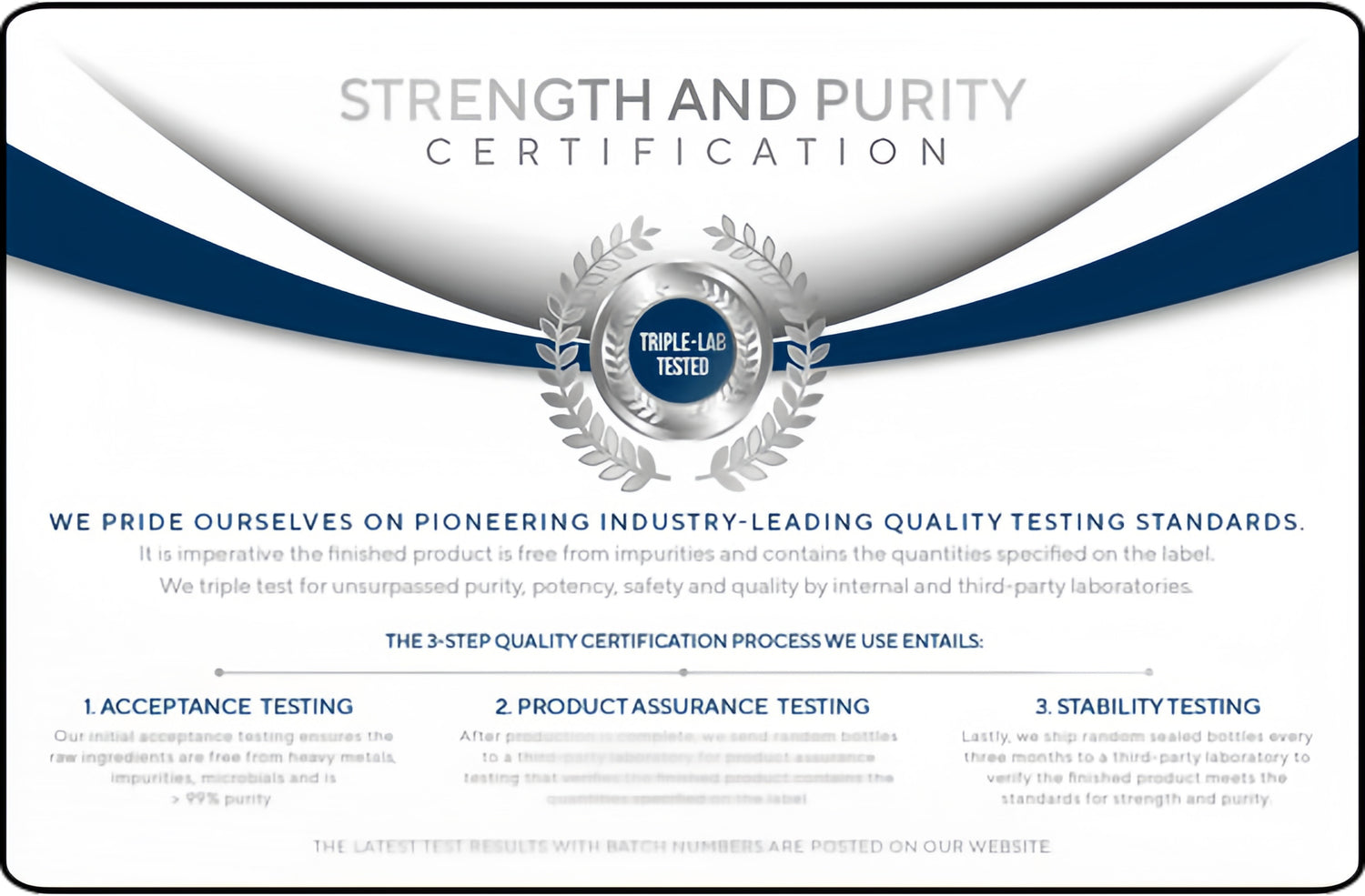 After production, we send the finished product to test that the capsules or jar has the amount specified on the bottle. That product assurance test has the batch number of the bottle, so customers can confirm the bottle they purchase truly has the quantity of active ingredients specified on the bottle.
